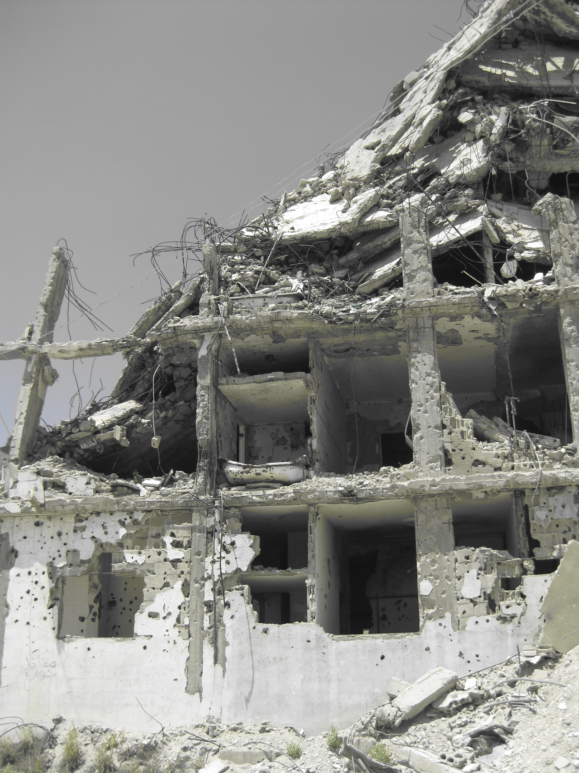 Zerstörte Häuser am Rand des Neuen Camps